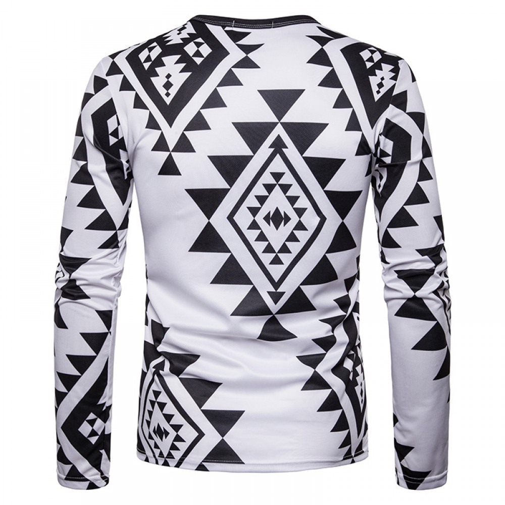 Men's Personality Diamond Symbol Letter Printing Long-Sleeved T-Shirt