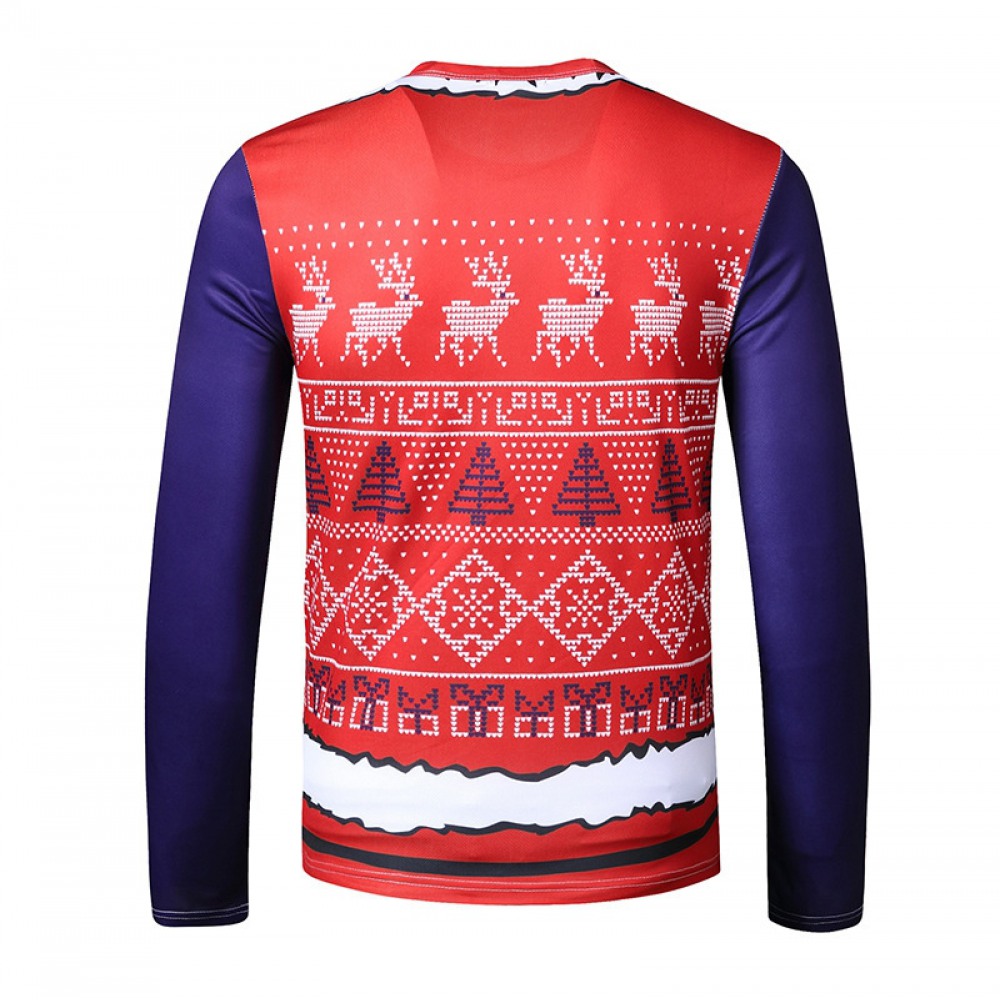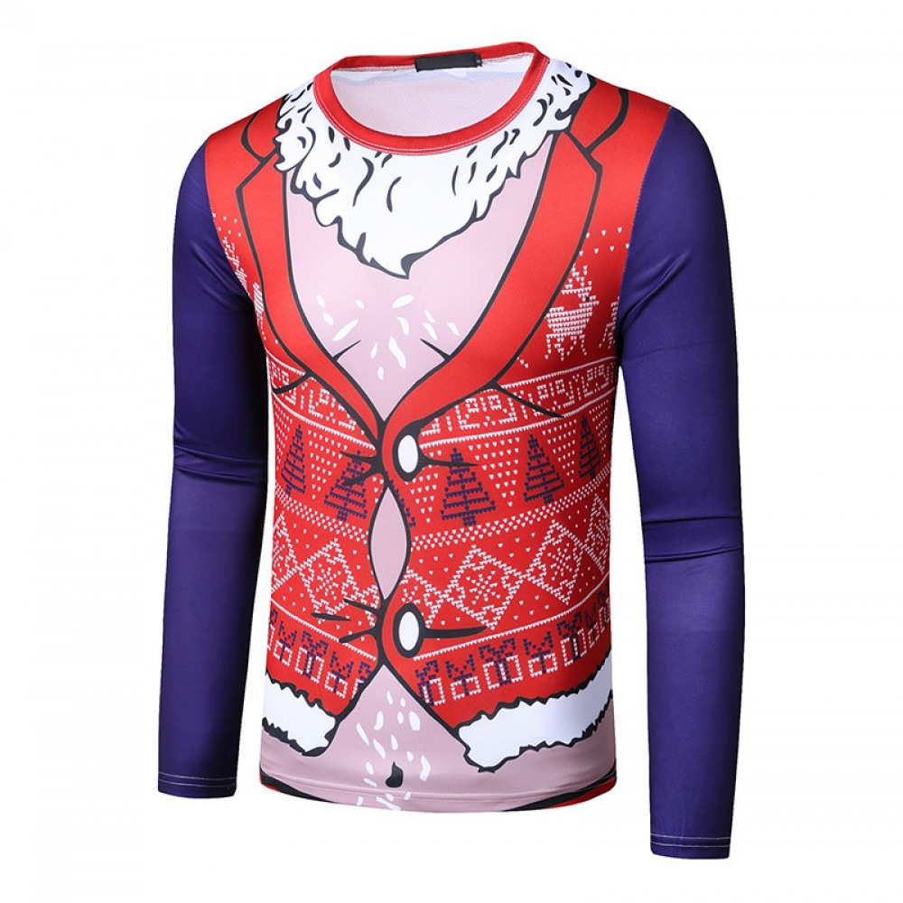 New 3D Personality Printing Fashion Men's Christmas Santa Pattern Long-Sleeved T-Shirt