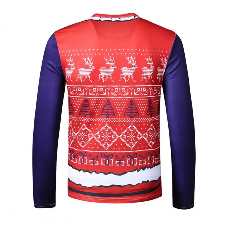 New 3D Personality Printing Fashion Men's Christmas Button Pattern Long-Sleeved T-Shirt