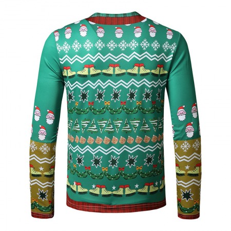 New 3D Personality Printing Fashion Men's Christmas Santa Pattern Long-Sleeved T-Shirt