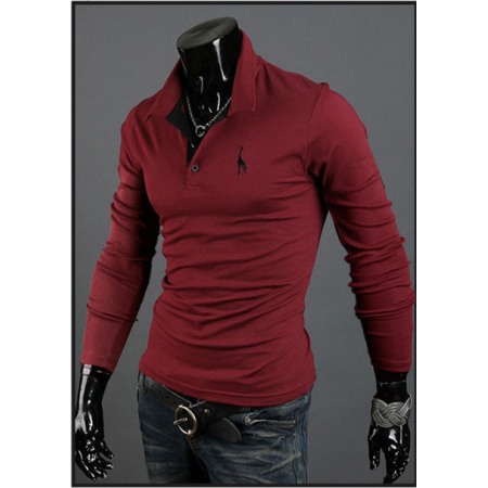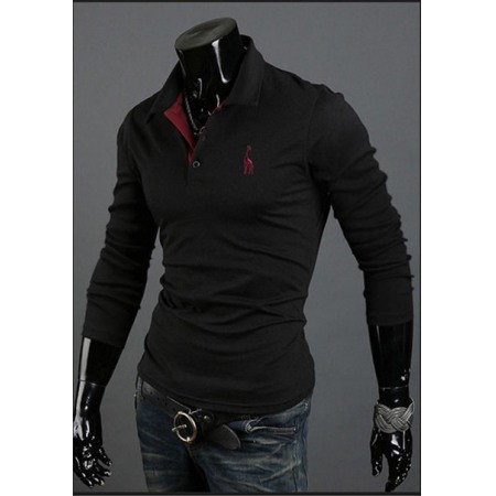 Long-Sleeved Lapel Men's T-Shirt Solid Color Top One-Piece Long-Sleeved