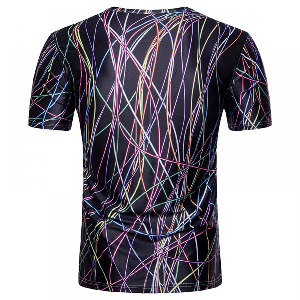 Men's 3D Short-Sleeved Printed T-Shirt Line Printing Design Casual T-Shirt Sports T-Shirt