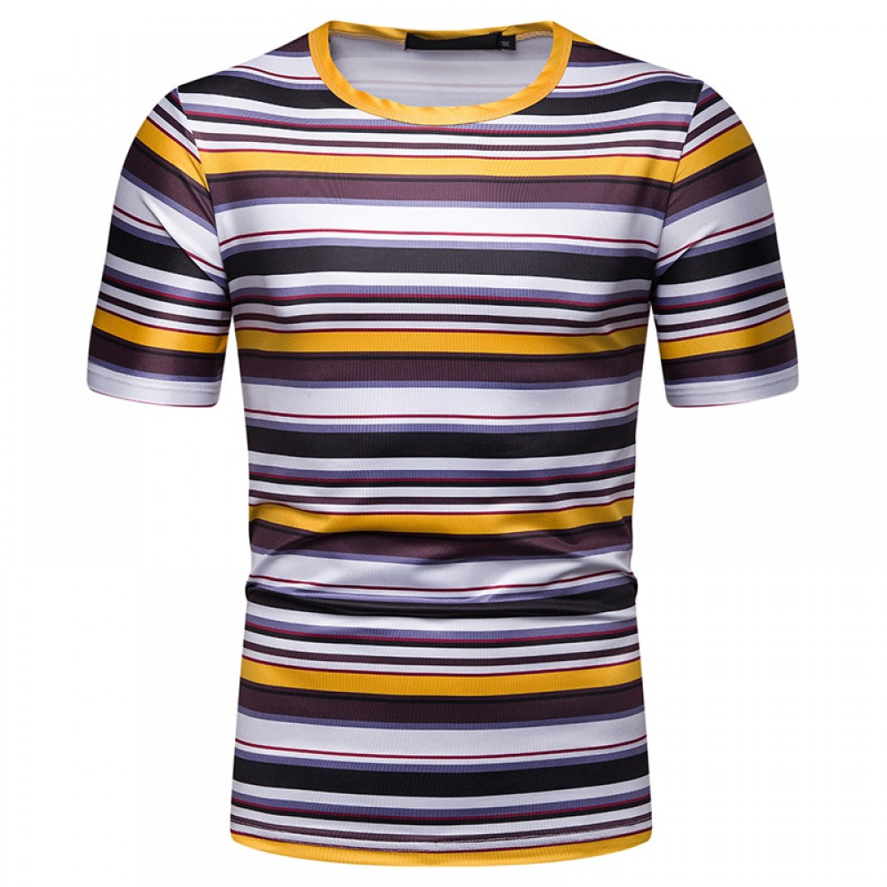 New Summer Men's Short-Sleeved T-Shirt Men's Contrast Striped Slim Casual T-Shirt
