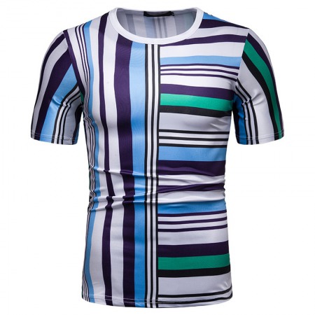 New Summer Men's Short-Sleeved T-Shirt Mens Contrast Striped Slim Casual T-Shirts