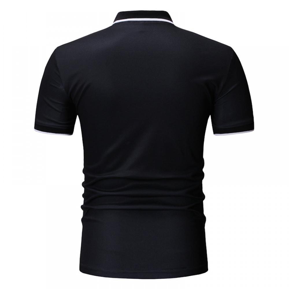 Summer New Slim Men's Lapel Vertical Stripes Printed Short-Sleeved T-Shirt