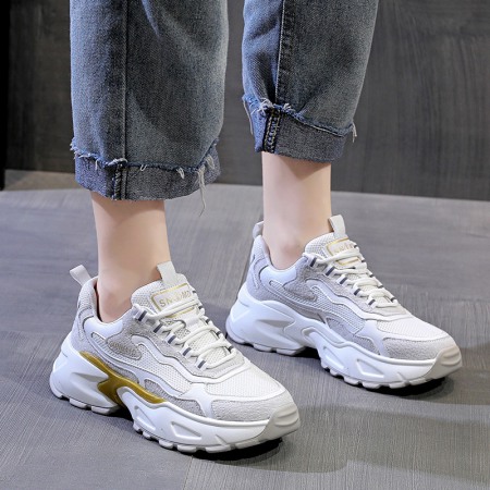 Women's Autumn New Casual Sports Shoes Mesh Breathable Thick Sole Height-Increasing Shoes Summer Trendy Sneakers
